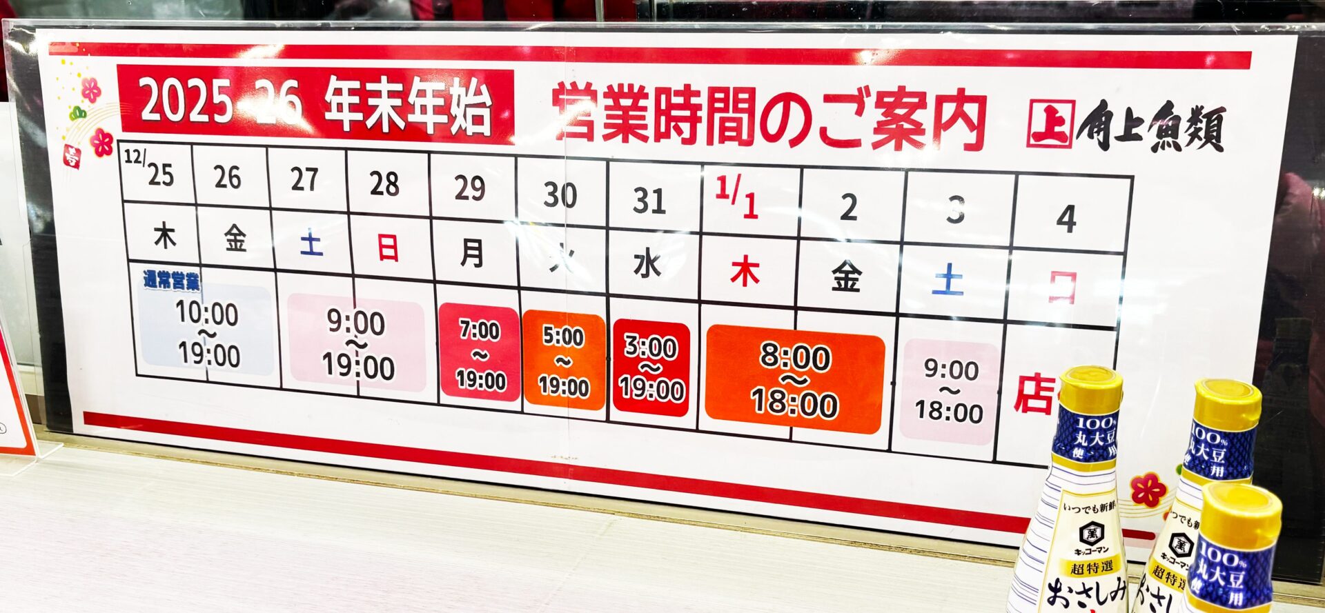 【角上魚類日野店】2025-2026年 お正月!年末年始!営業時間情報・特設お歳暮コーナー