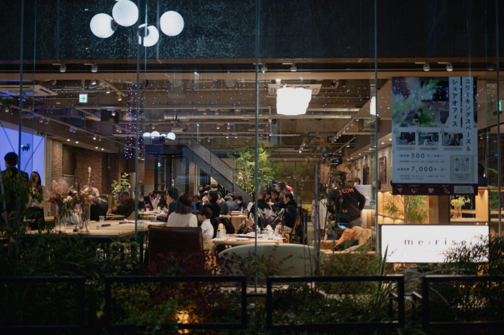 道路側はガラス張りで、外からでも開放感あふれる雰囲気が伝わってくるオシャレなスペース。